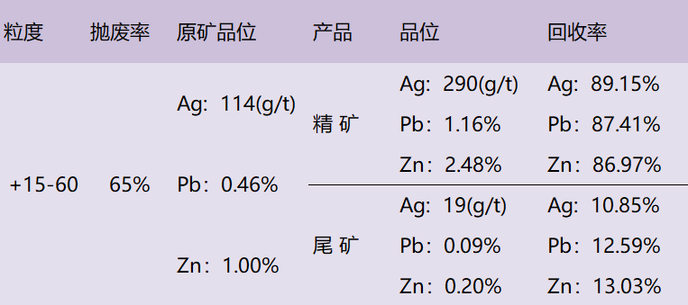 目前宇邦矿业原矿预先抛废工艺一期工程已投入两台XNDT-104智能分选机,根据前期工业试验结果,预计每年增加产值数千万元。